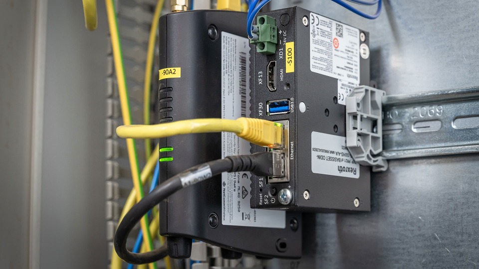 Mise à jour simplifiée du matériel : boîtier d’acquisition de données avec une passerelle intégrée de Bosch Rexroth pour la collecte des données et leur transfert sécurisé vers un cloud.