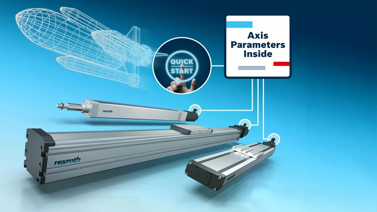 Les sous-systèmes mécatroniques de Bosch Rexroth sont conçus pour une mise en service rapide. Un clic suffit pour transmettre au contrôleur les paramètres des vérins électriques, des guidages linéaires et des systèmes cartésiens stockés dans la mémoire du codeur moteur. Les données d’axes définies à partir des paramètres du système sont prises en compte automatiquement.